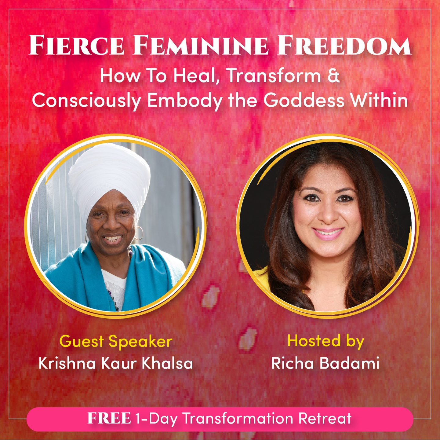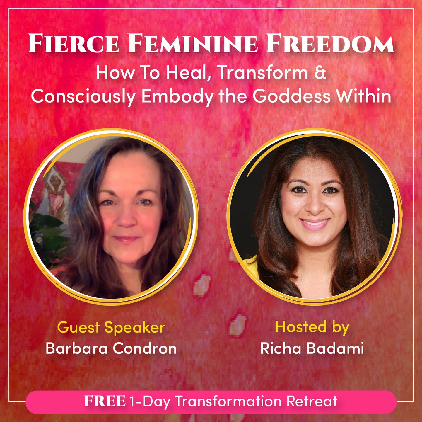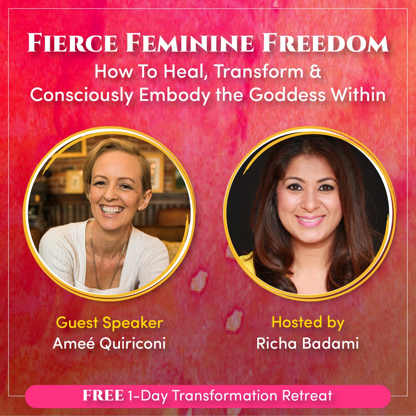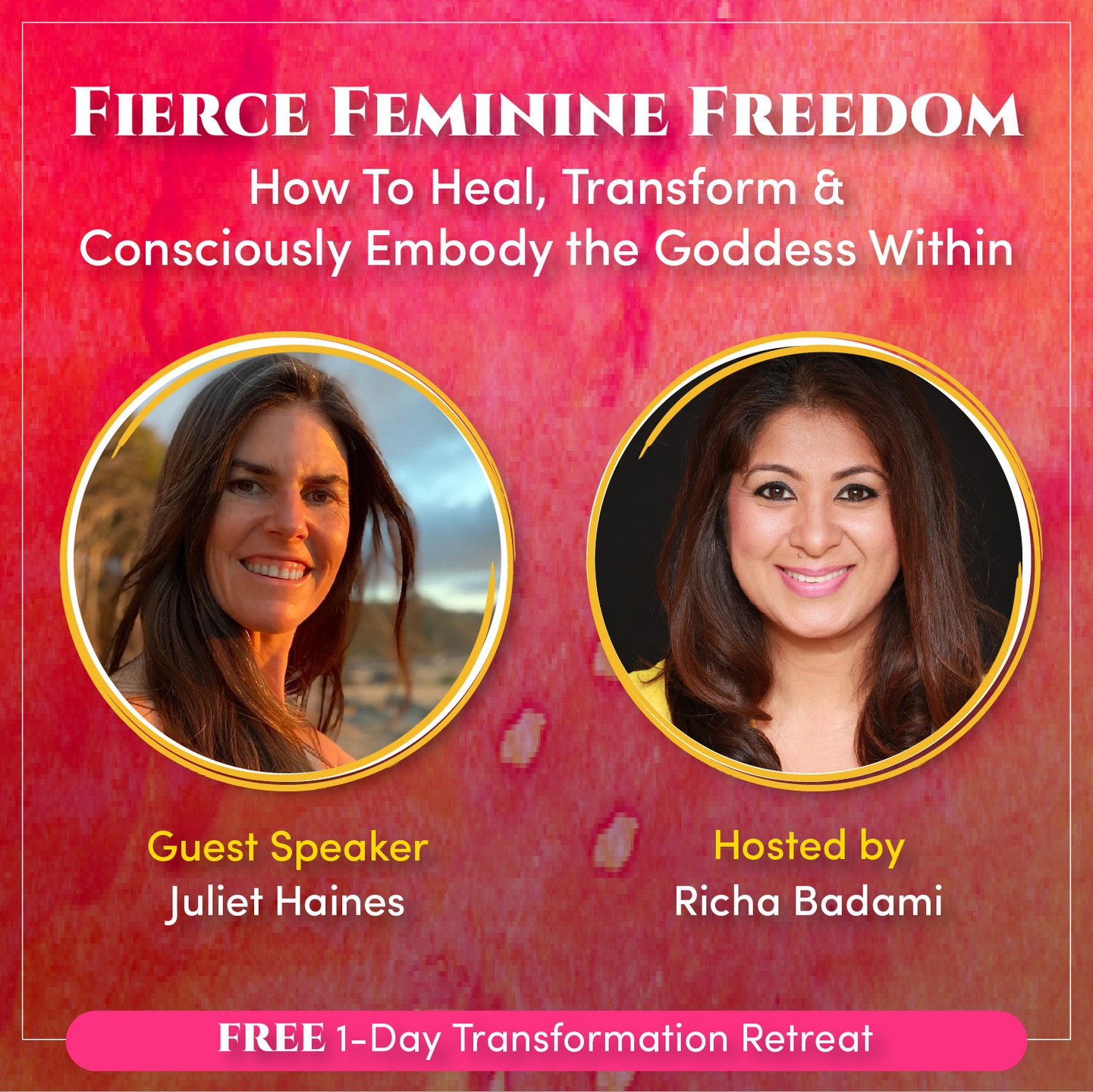 Do you want to learn more about how to awaken and embody your inner Goddess and have Fierce Feminine Freedom? Don’t miss my interview with Richa Badami during this FREE 1-Day Transformation Retreat on [April 8th, 2021]! where we dive into that and so much more. [LINK]